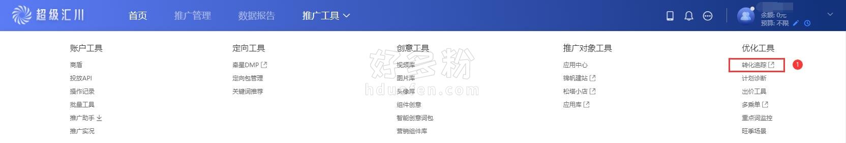 2.阿里超级汇川后台,推广工具>优化工具>转化追踪,创建网页API: